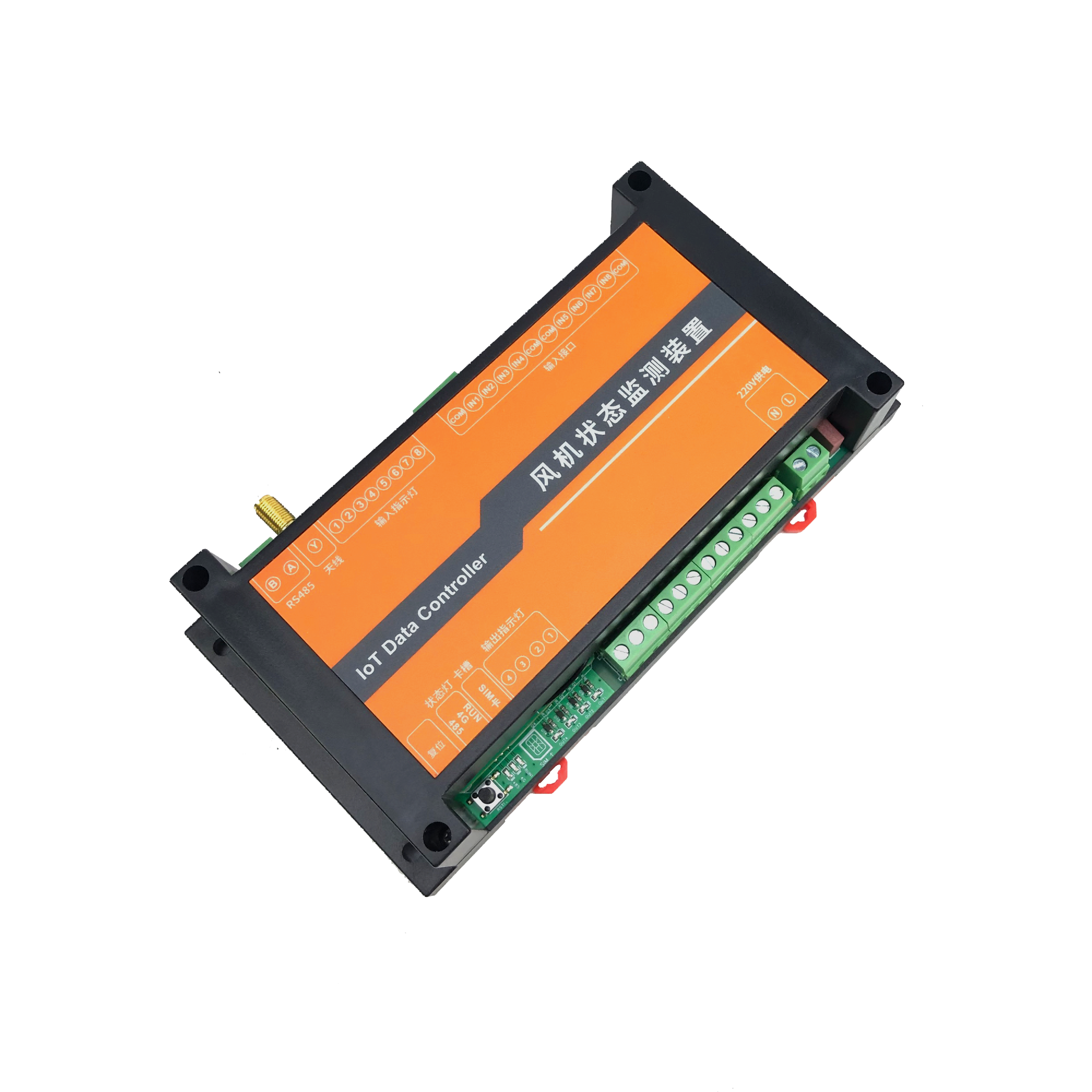 主要特點(diǎn):4路繼電器采集、1路模擬量采集、1路485采集風(fēng)機(jī)狀態(tài)監(jiān)測(cè)裝置 | ||
